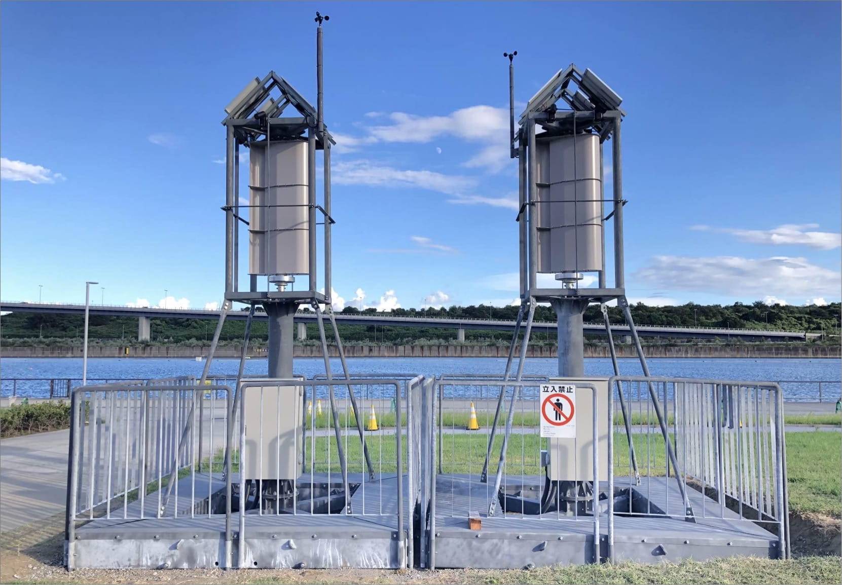 以前にコカネットでも紹介した、輸送設置が簡単にできるチャレナジーの可搬式風力発電機が見られます。