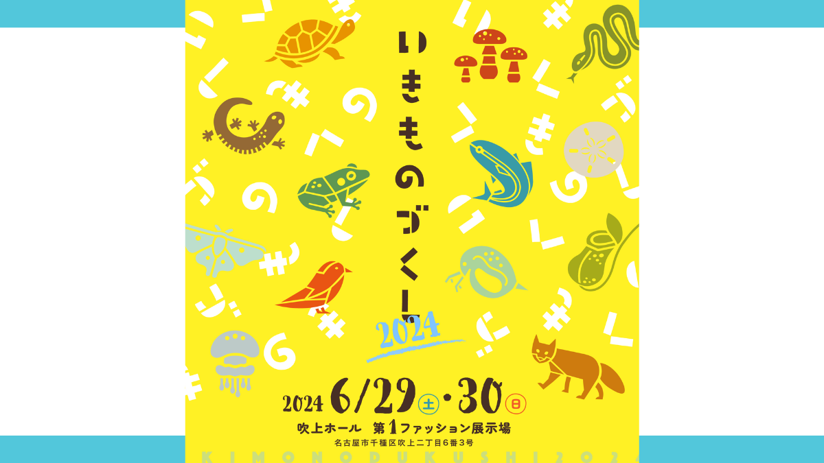 生き物好きのみんなに朗報! 2024年6月29日(土)・30日(日)に名古屋市の吹上ホールにて、「いきものづくし2024」が開催されるよ。全国の生き物グッズ作家100名超が集結! 今すぐスケジュール帳に予定を♪