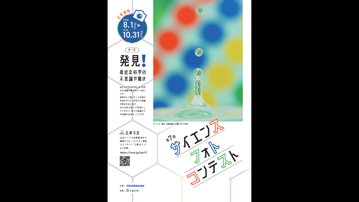 募集テーマは、「発見! 身近な科学の不思議や驚き」。池の水の一滴を顕微鏡で覗いてみたり、夜空を見上げてみたり……身近なところにある科学の不思議や驚きを見つけたら、写真で切り取ろう。