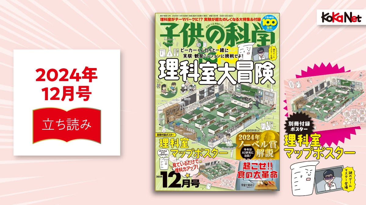 2024年10月7日の生理学・医学賞を皮切りに、ノーベル賞の受賞者が発表されました。『子供の科学』が注目する生理学・医学賞、物理学賞、化学賞の研究を図解とともに解説します。改めて内容をよく知りたい!という大人も必読です。