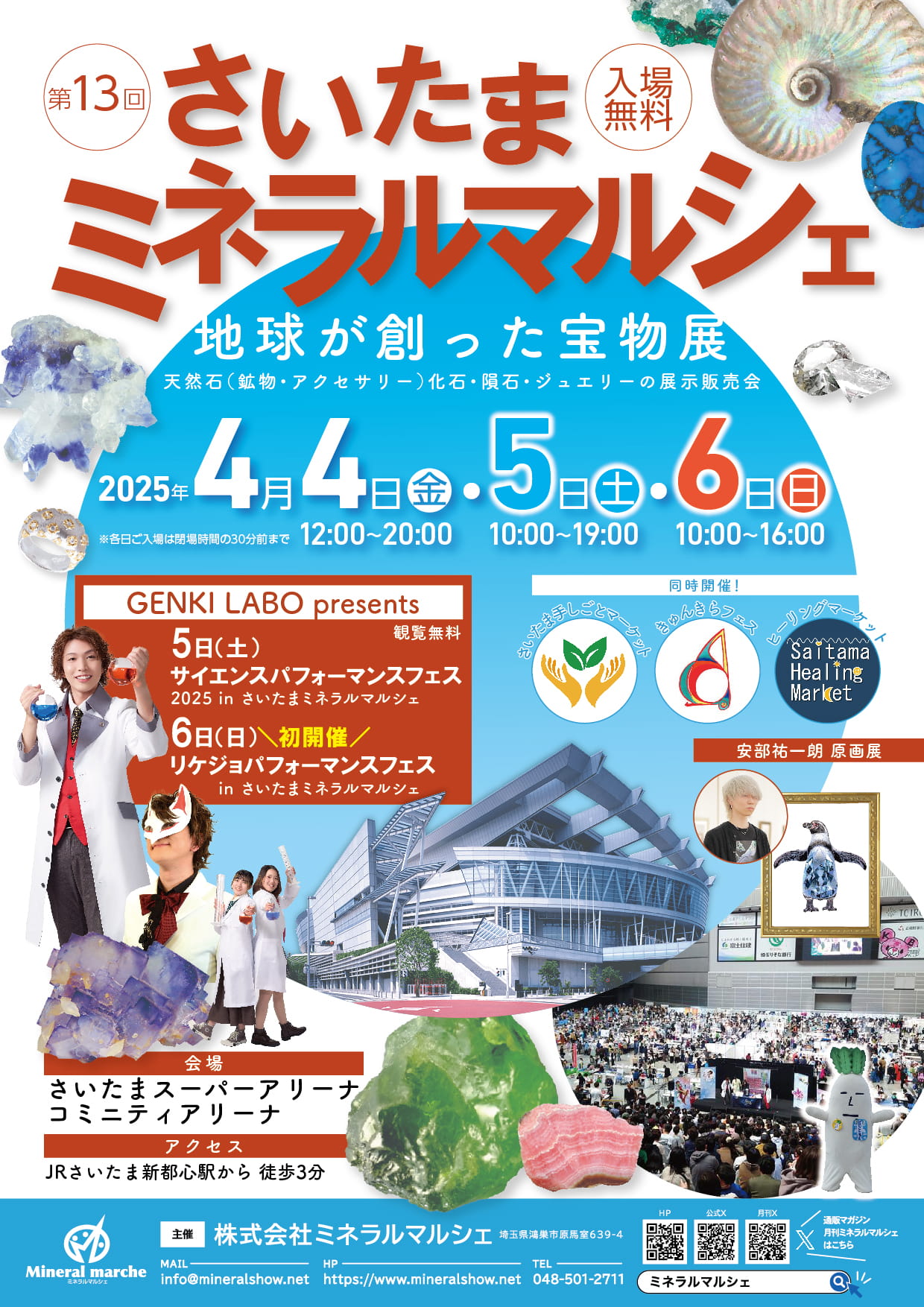 4月4日(金)、5日(土)、6日(日)の3日間、さいたまスーパーアリーナを会場に「第13回さいたまミネラルマルシェ」が開催されるよ。昨年は4万人が来場したという大イベント。みんなもぜひ行ってみてはどう?