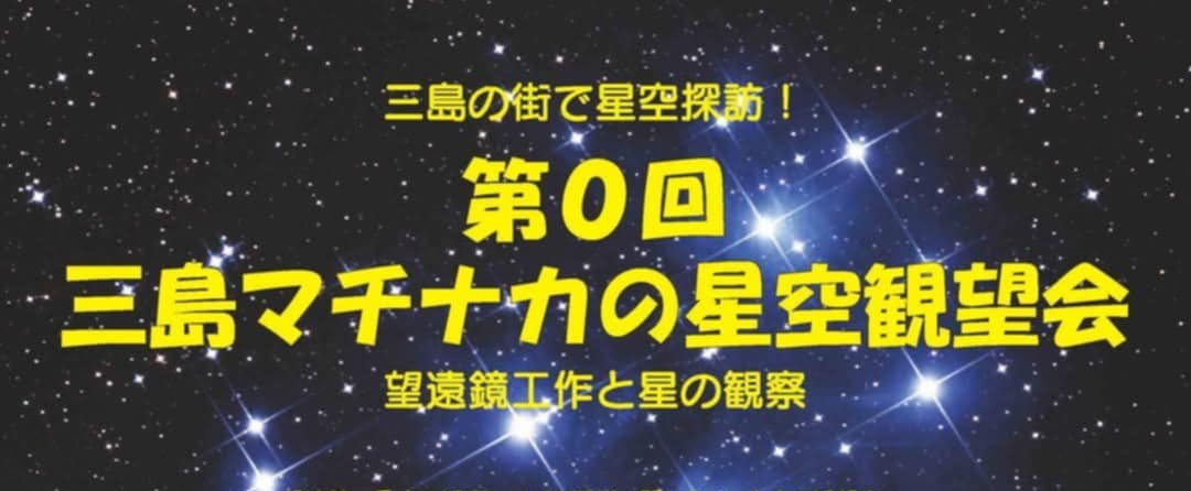 観望会は、望遠鏡で星空を観察しながら、解説を聞くことができるイベント。街灯などが少ない場所で行われることが多いけど、この「三島マチナカの星空観望会」では、文字通り街中で開催するよ。