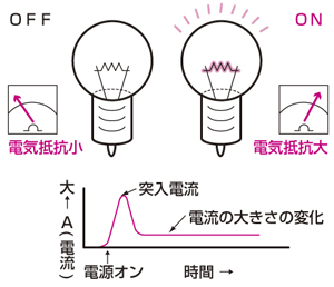 そのため、スイッチを入れた最初の瞬間に大きな電流が流れる。