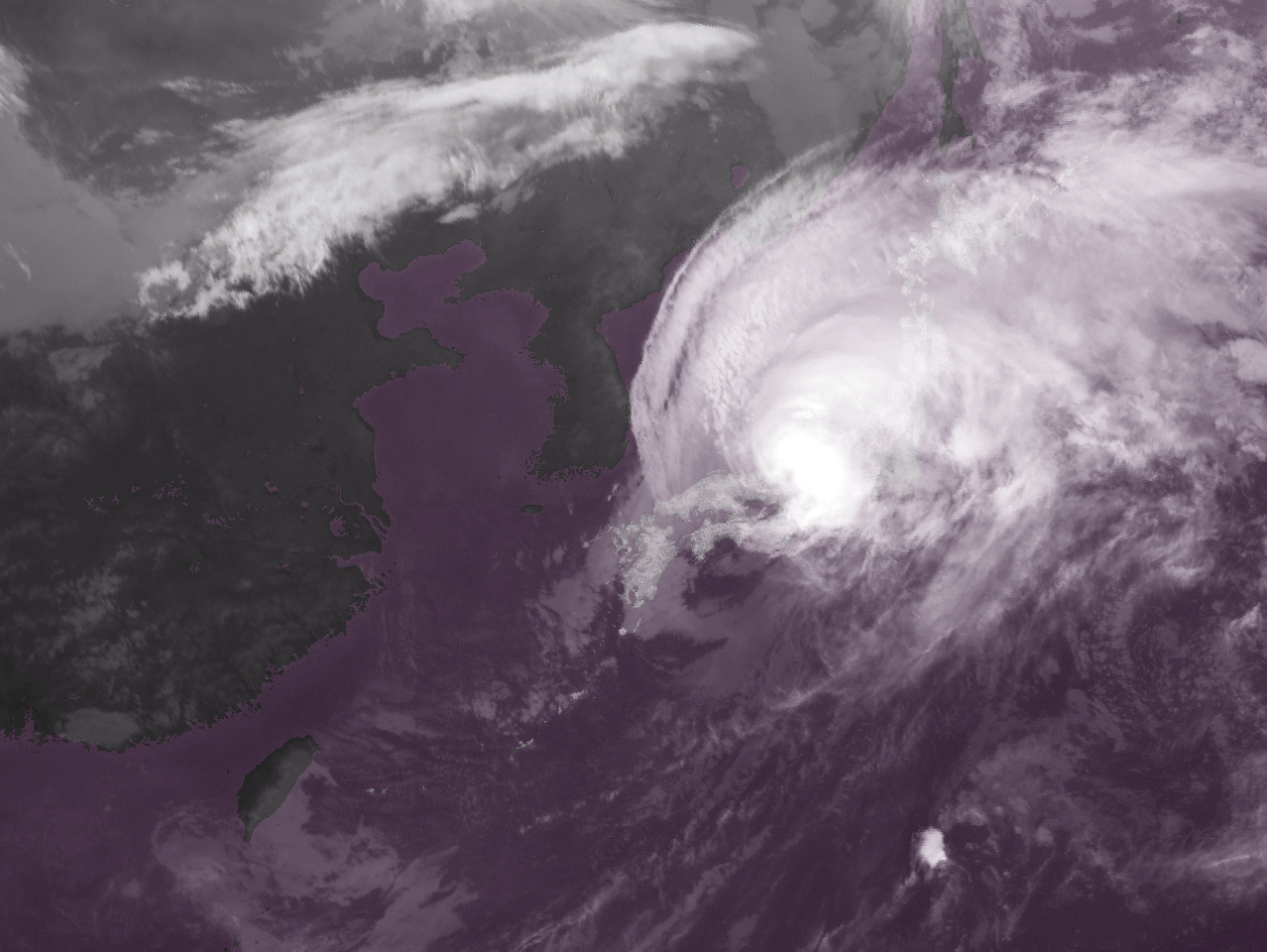 一方、衛星写真2は2004年10月20日、台風23号のものですが、衛星写真1とは違い、全体の雲域が本州中部を中心に1000km以上も大きく広がっています。