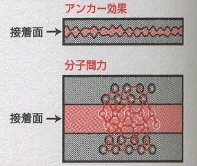 アンカー効果説では、材料の細かな隙間に接着剤が入って固まります。