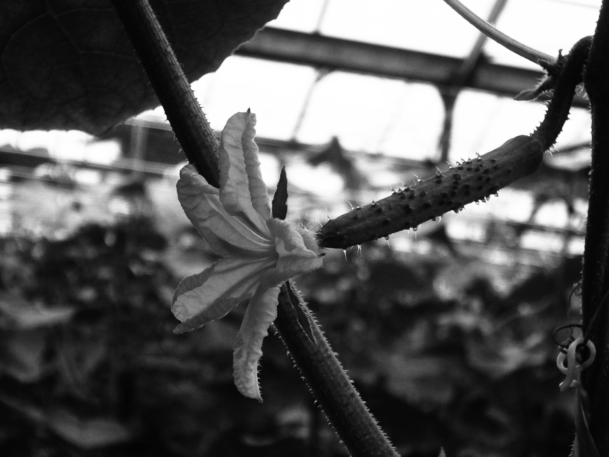 写真はキュウリの雌花ですが、この時期の幼果はイボが明瞭で、中心部にトゲがあるのがわかります。キュウリのイボはトゲが生えていた名残なのです。それではイボ(トゲ)は何のためにあるのでしょうか?