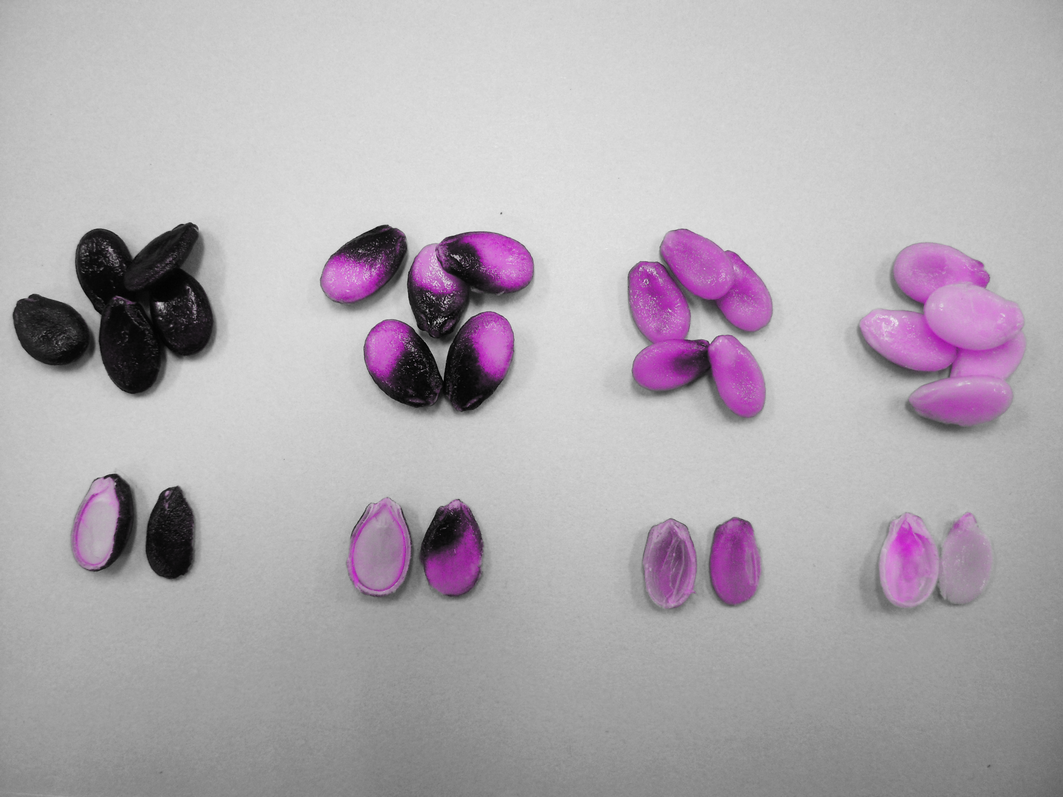 正常なタネ(黒)と受精しなかった タネ(白)が混じっているから