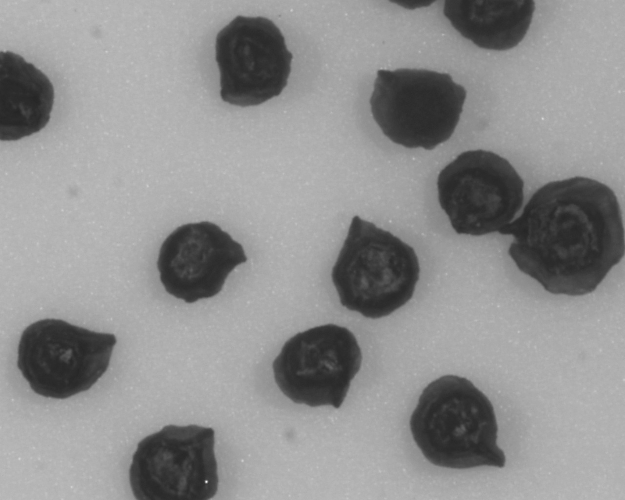 小さくて形もさまざまな市販バナナの種子のなごり(発芽能力はない)。