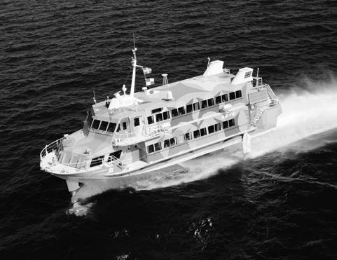 ジェットフォイルは主船体を空中に出して抗力を少なくし、普通の船よりも高速で進むことができます。また、空中に主船体を出すことで、波の影響を受けにくくなるという利点もあります。