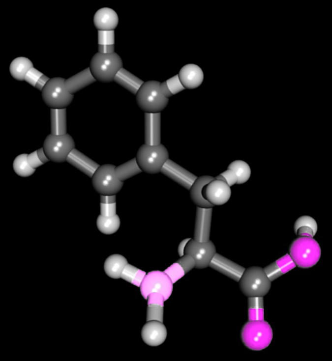 図 体を構成するアミノ酸の一種の分子構造。グレーで示された炭素を骨組みに、水素や酸素、窒素が結びついている。