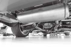 普通の自動車の消音機(手前の大きな筒のような部分)。
