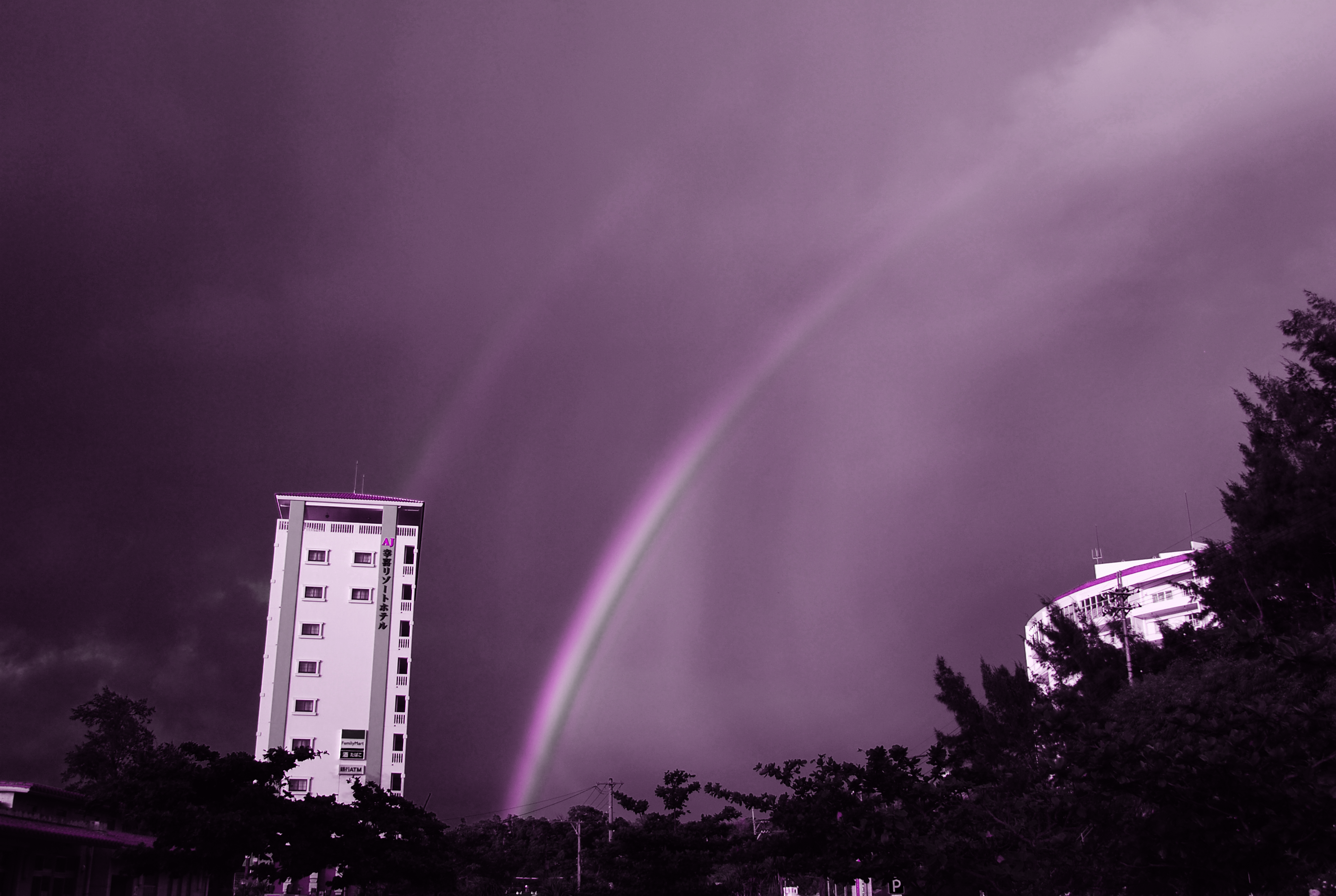 天気雨のときに現れた虹。2010年8月29日、沖縄県で撮影。