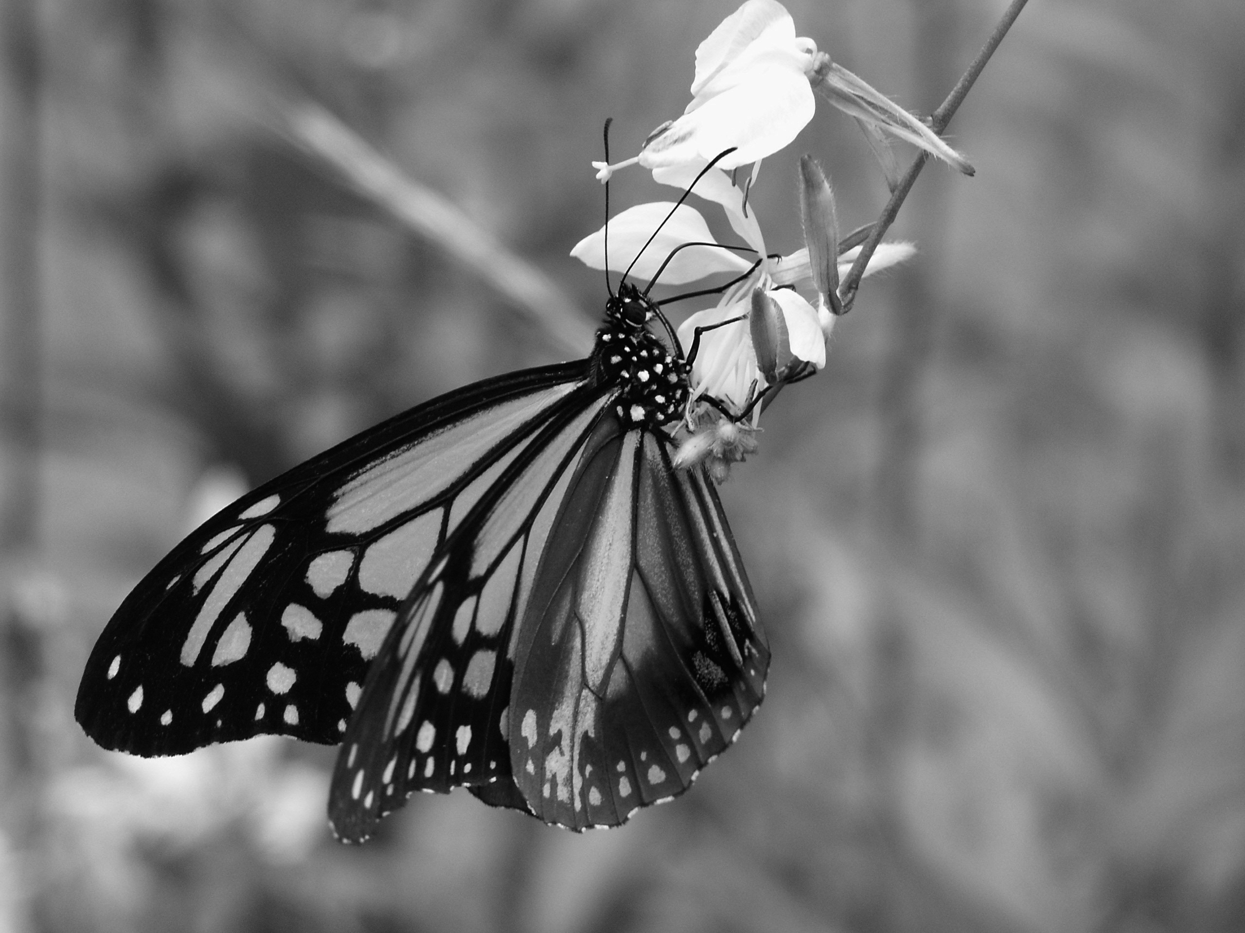 アサギマダラは名前の通り、翅の地色が浅葱色(薄い青緑色)をしていて、黒~茶色のまだら模様のある大型でとても美しいチョウだ。