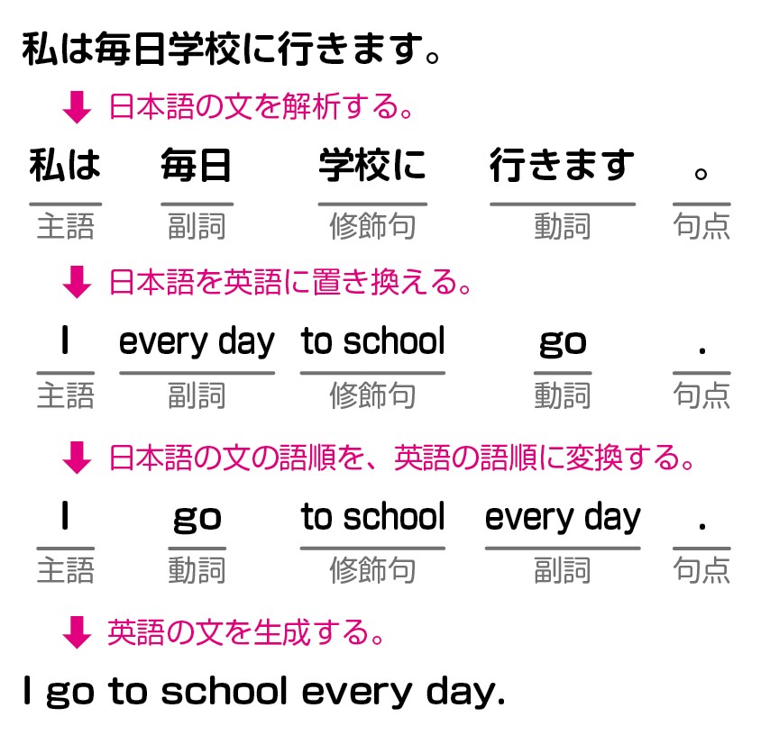 文の意味を理解して、日本語の単語を英語に置き換えます
