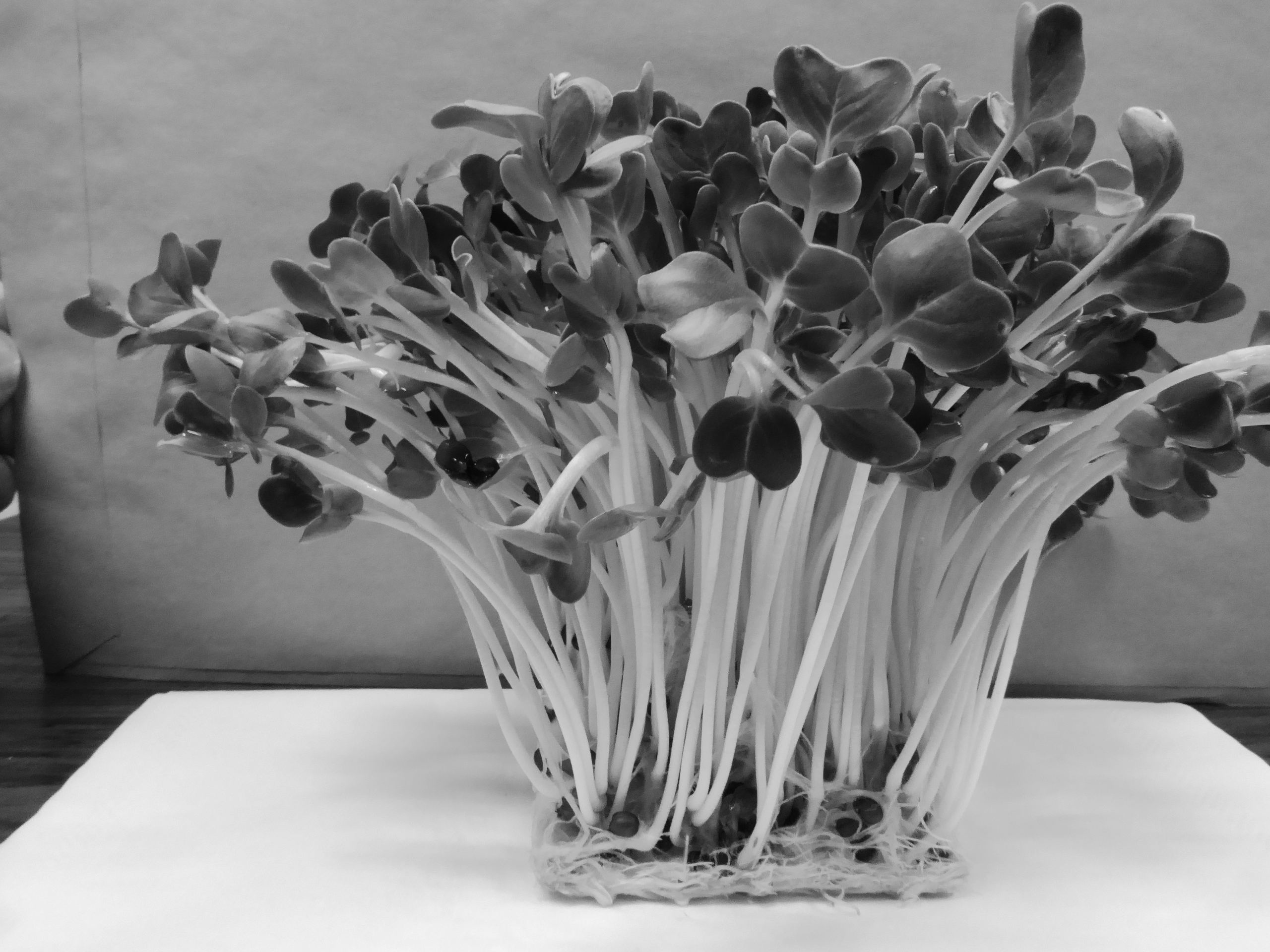 みなさんはカイワレダイコンを見たことがありますか? カイワレダイコンは、ダイコンの発芽直後のものです。カイワレとは子葉(双葉)のことで、発芽した直後に、貝殻が開いたように2枚の子葉を開くことからこの名前がついています。