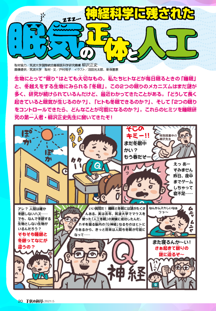 生物にとって「眠り」はとても大切なものです。私たちヒトなどが毎日眠るときの「睡眠」と、冬越えをする生物にみられる「冬眠」。この2つの眠りのメカニズムについて、最近わかってきたことがあります。「どうして長く起きていると眠気が生じるのか?」、「ヒトも冬眠できるのか?」、そして「2つの眠りをコントロールできたら、どんなことが可能になるのか?」。これらのヒミツを睡眠研究の第一人者・柳沢正史先生に聞きました。