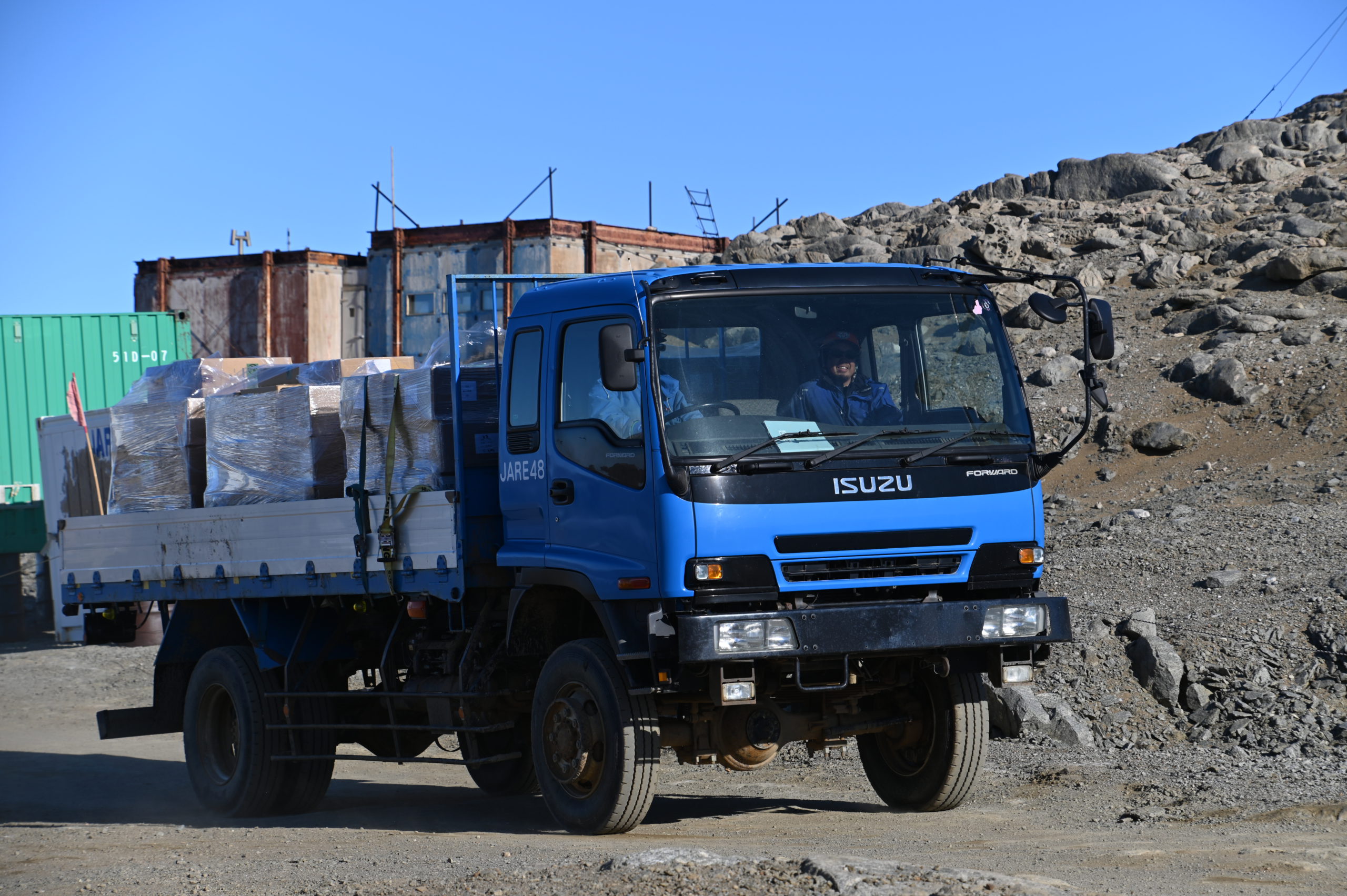2ヶ月ほどの短い夏の間には、南極観測船「しらせ」で持ち込んだ大量の物資を運ぶトラックや、建物の建設や解体したりする重機などが活躍しています。冬の期間では、基地から遠く離れた観測地点へ向かうために雪上車が使われていますし、基地の周りに積もった雪を除雪するのにブルドーザーやバックホーなどが活躍しています。このように南極では何をするにも働く車が欠かせない存在です。