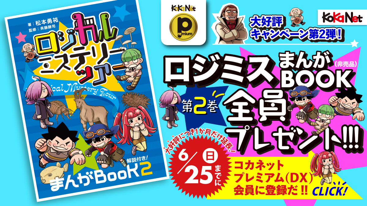 コカネットで大好評連載中のまんが「ロジカル・ミステリー・ツアー(ロジミス)」は、青い石探しの冒険もいよいよ佳境! わくわくする展開を楽しみにしている読者から、たくさんの反響が届いているよ。