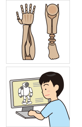 骨格の理解は、ロボットやハイテク義手など最先端の工学とつながっているんだ。人体骨格模型から発展して、ヒトの骨格とロボットの構造の関係などを考えてみるのもおもしろいよ。人間の骨格に近い、使いやすい義手や義足の開発や、直立二足歩行ロボットの開発などについて調べてみよう。