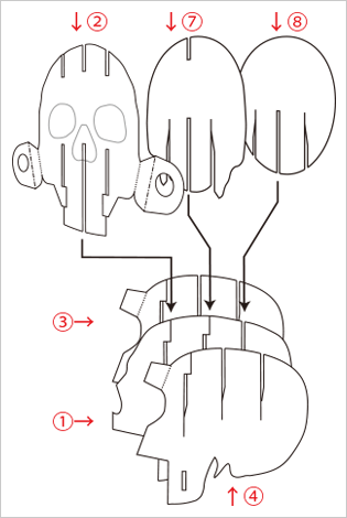頭蓋骨が組み立てられる型紙サンプルを無料でダウンロードできます。