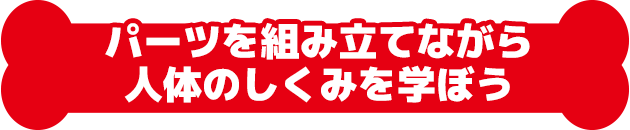 パーツごとに骨の名前が書かれていて、組み立てながら骨格の名称やしくみを覚えていける! 骨格の構造をできる限りリアルに再現しているゾ。骨が折れてしまわないようにていねいにつくっていこうね。