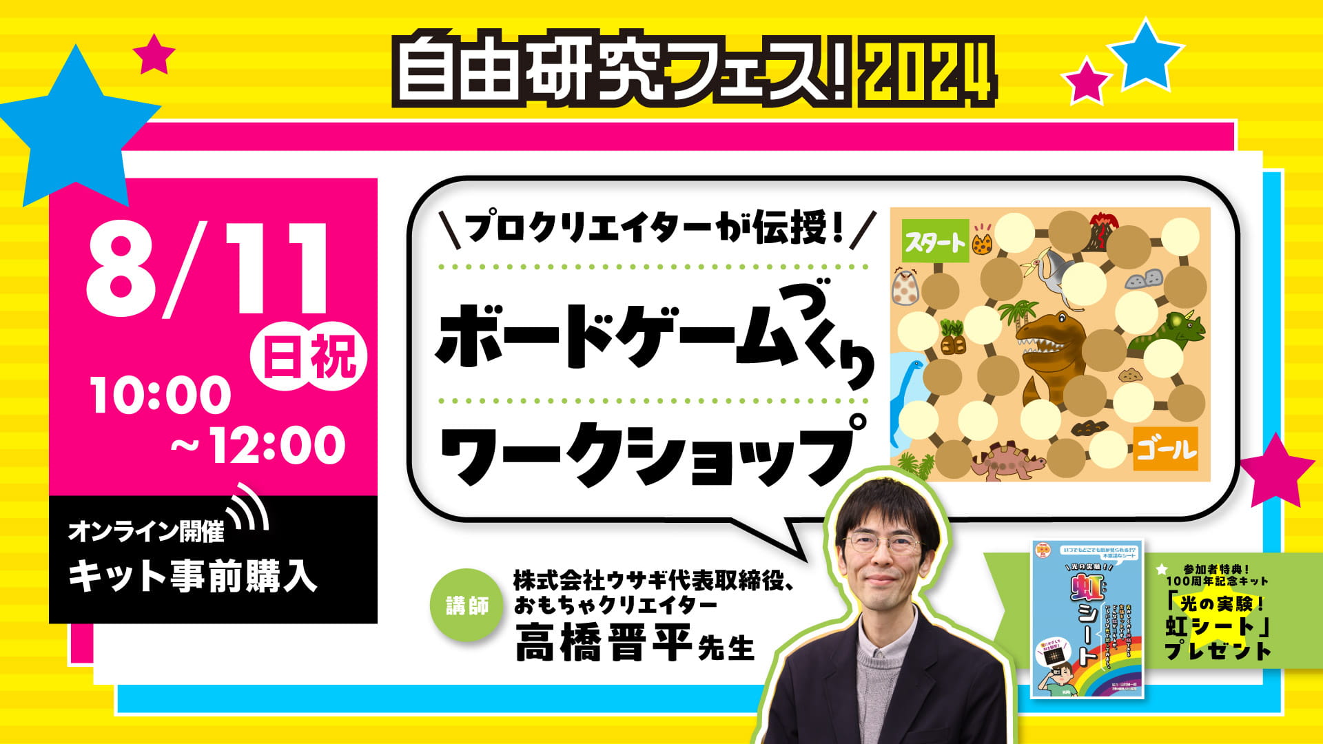 『子供の科学2024年5月号」の特集「プロクリエイターが教える ゲームのつくり方」で紹介したアナログゲームを、プロクリエイターと一緒につくっていくワークショップです。 「スタートからゴールまでコマを進める」ゲームを、みなさんの好きな世界観で、ゲーム […]