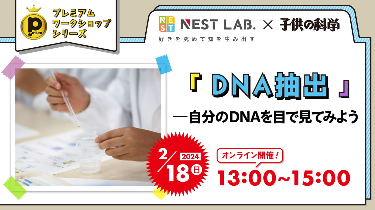 小中学生の才能発掘研究所「NEST LAB.」とコラボレーションして、身近な科学やものづくり、テクノロジーを学んでいくプレミアムワークショップシリーズ(月1回を予定)。2月は、自分自身のDNAを取り出して観察するワークショップです。  世界にはたく […]