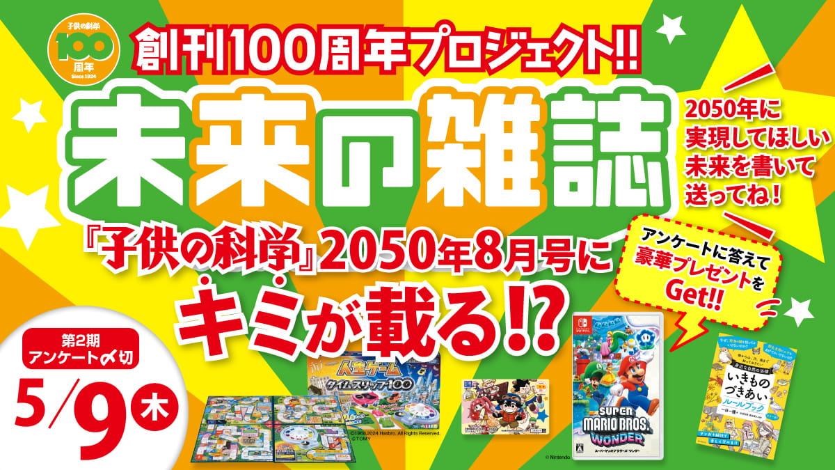 未来の雑誌『子供の科学2050年8月号』にキミが載る!?《100周年記念「未来アンケート」》に答えて豪華プレゼントをもらおう