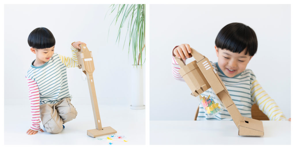 「かぞくでつくるダンボール工作キット」(「掃除機」「双眼鏡」)
