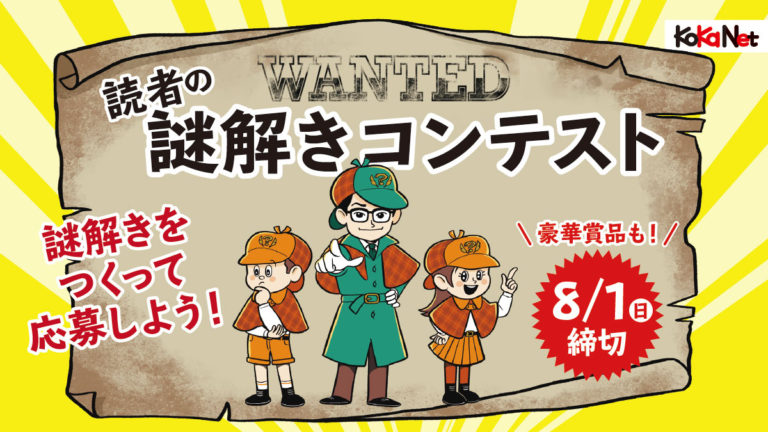 応募してくれた謎解き作品は、東田大志先生が審査を行い、おもしろい作品はコカネット上で発表。キミがつくった謎解き問題を、読者のみんなに答えてもらうぞ。