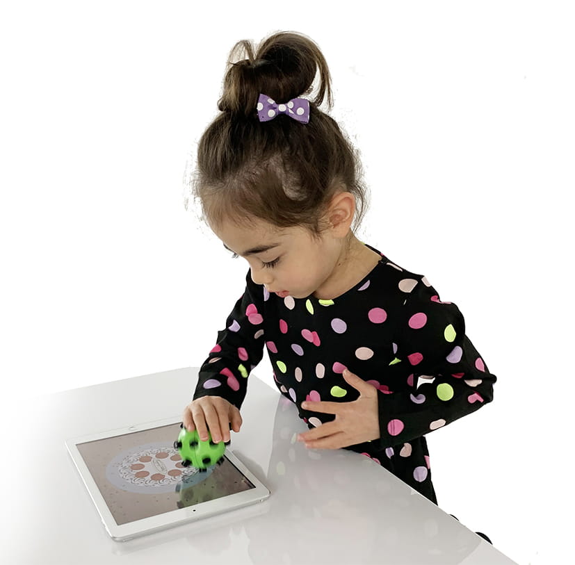 iPad にダウンロードした専用アプリを使って、デコボコと突起のついたボー