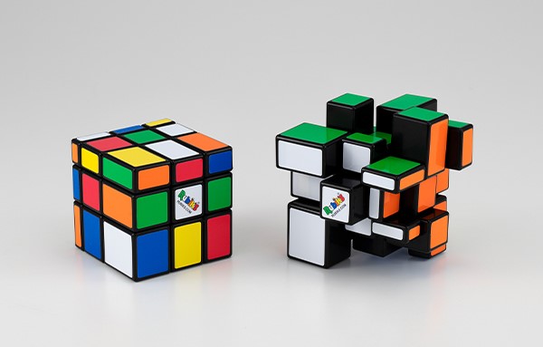 「形」と「色」、2通りの揃え方が楽しめるルービックキューブが登場。「形を揃える」場合は、立方体に揃えれば、各面の色がバラバラでもOK。「色を揃える」場合は、各面同じ色で6面を揃えることで、形は凸凹でもOK。色と形に惑わされるため、通常のルービックキューブよりも難易度は高い。キミにこのパズルが解けるかな?