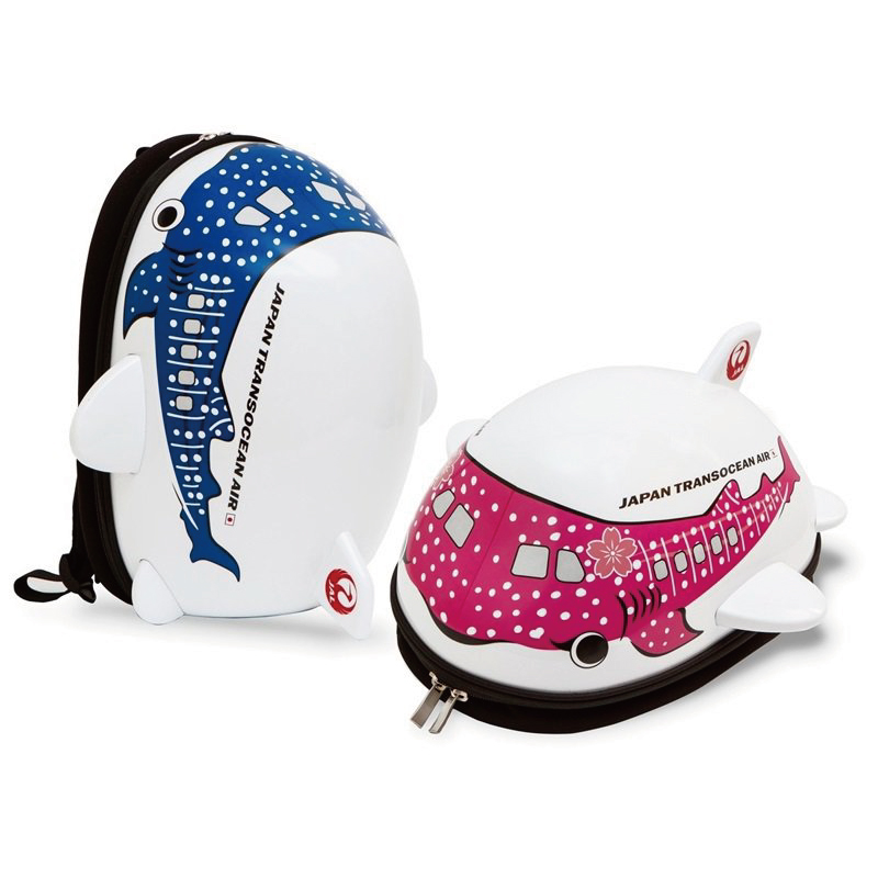 ジンベエザメがプリントされたペイント機『ジンベエジェット』、『さくらジンベエ』(JTA)モデルのバックパックが登場。たくさんのおもちゃやお菓子を持ち運べる、8L の大容量サイズだ。スーツケースと同じ素材を使った、丸くてコロンとした飛行機型のフォルムもかわいくって、おでかけのときにどこでも持ち運びたくなる!