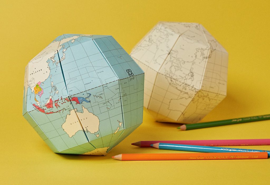 地球儀ブランドgeografiaが協力して、組み立てながら地球の内部や地理が学べる地球儀のペーパークラフトが誕生した! 仕上がりサイズは地球の8500万分の1! 実際の地軸の傾き(23.4度)で飾れるように計算された独特な形状にも注目だ。色を塗ったりイラストや文字を書いたりアレンジして、オリジナル地球儀をつくってみよう!