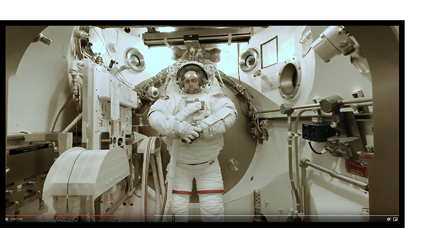 子供の科学2月号60ページ~で紹介。こちらは真空状態がつくれる施設で、宇宙服の性能テストに臨む宇宙飛行士の様子が映されたVR。船外活動(EVA)するときにはEMUと呼ばれる船外活動用の宇宙服一式(EMU)を着用する。生命維持のための大事なテストだね(このコンテンツは、アメリカ航空宇宙局(NASA)がYouTubeにアップしているものです)。